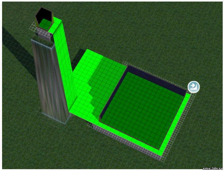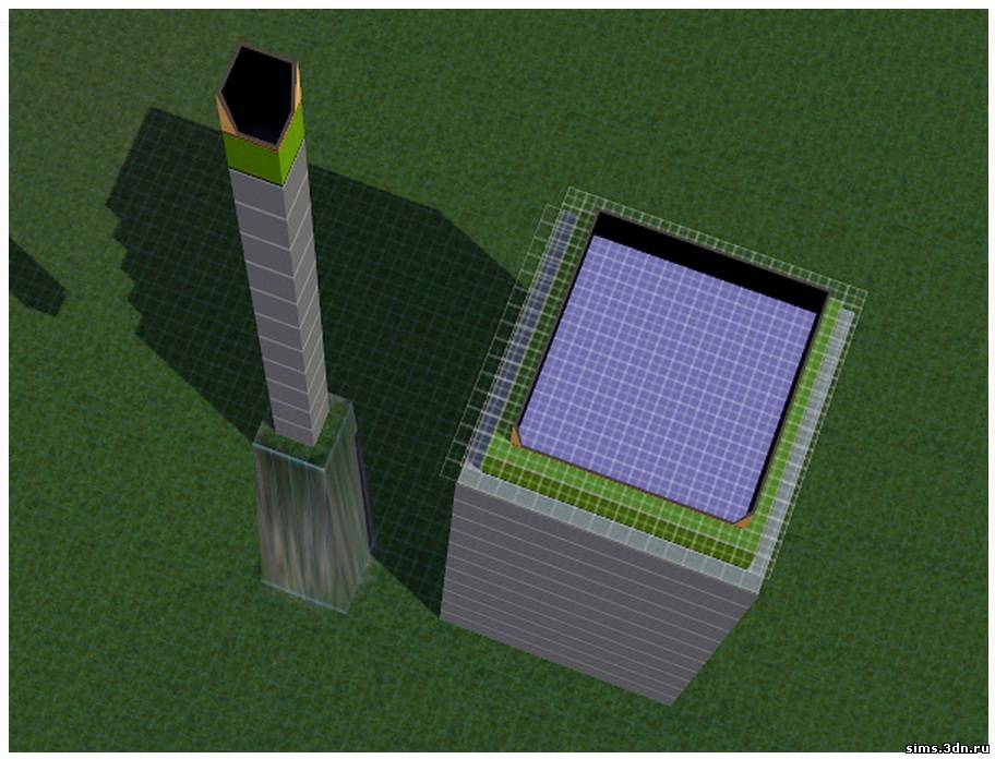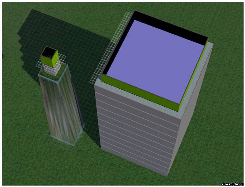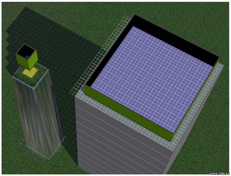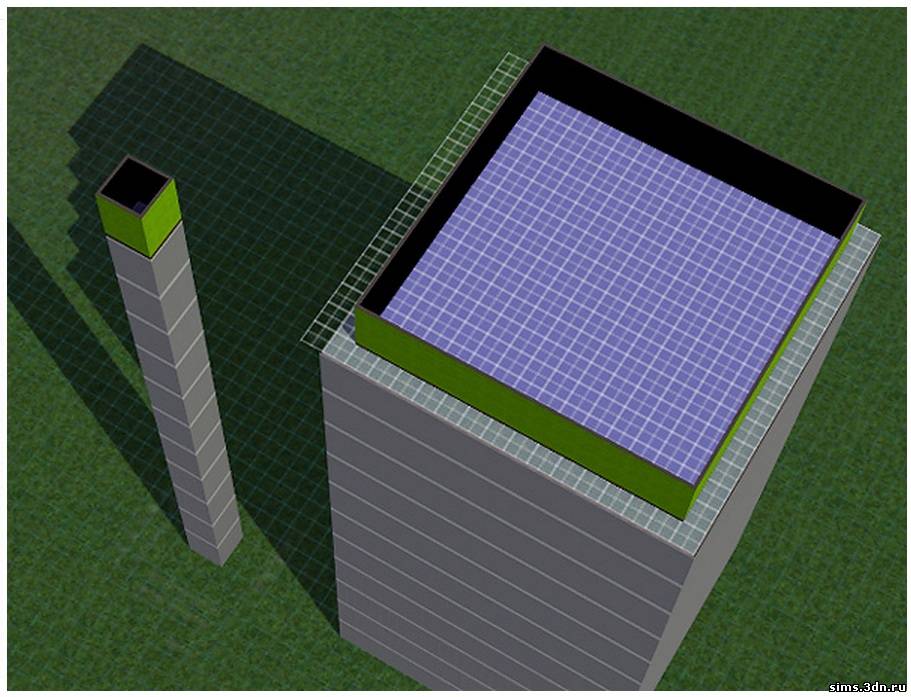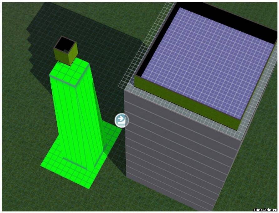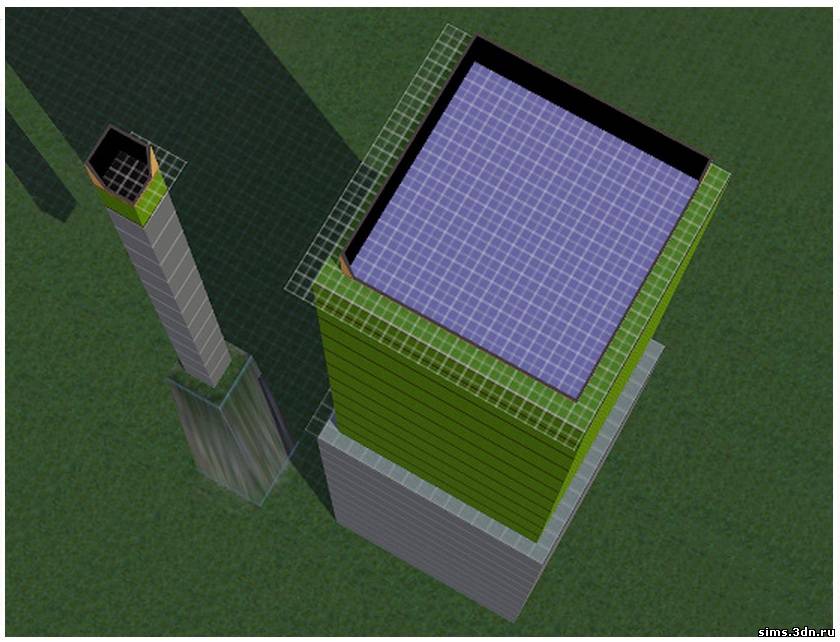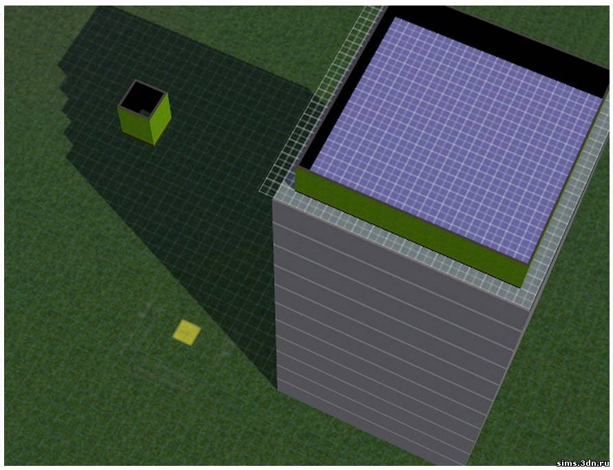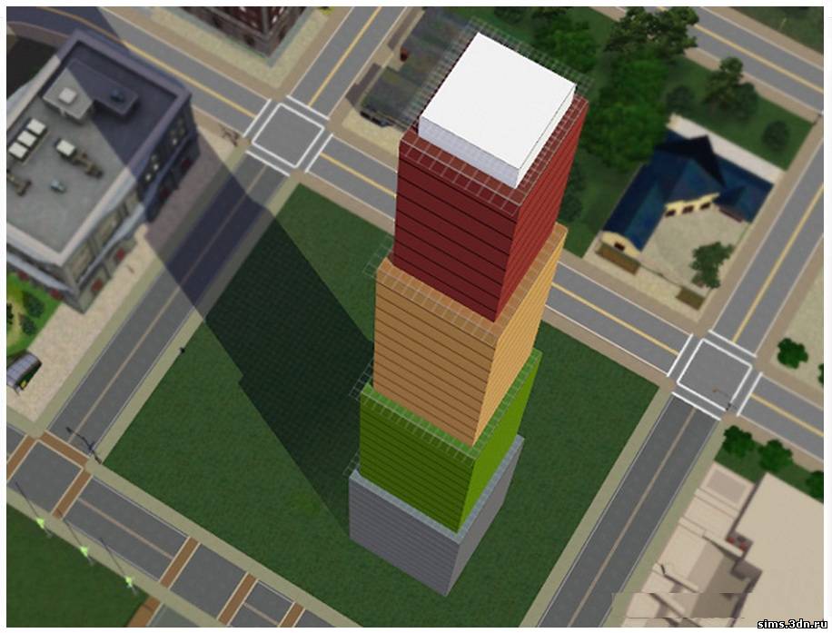 Важный момент. Вы не сможете поднять 4 этаж до 44, т.к. потолок симского неба ограничен как раз на уровне 43. Поднимая стены выше, вы увидите, как они мигают и исчезают. Так что при работе с четвертым этажом будьте аккуратны и внимательны. Перейдите сразу на пятый этаж, чтобы было видно общую высоту здания и башни, и поднимайте уровень земли постепенно.