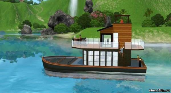 - выйдите в Режим изменения города, зайдите в редактор городка, выберете участок (например, 40*20), разместите его так, чтобы большая часть была в воде (также учитывайте то, что глубина должна быть большой, чтобы хаусбот мог причалить). - Затем кликните по иконке участка, смените его тип на "Общественный - Порт", опять кликните по иконке, зайдите в режим "Покупка/строительство", введите код отладки - Buydebug (при введенном коде разработчика), во вкладке "Разное" найдите и установите "Стильные сходни". - Выйдите в Режим изменения города, кликните по иконке участка, выберете опцию "Установить плавучий дом" и размер баржи. Затем можете прямо в Режиме изменения городка построить на ней дом или выйти в Режим жизни, приобрести этот участок и потом заняться стройкой.